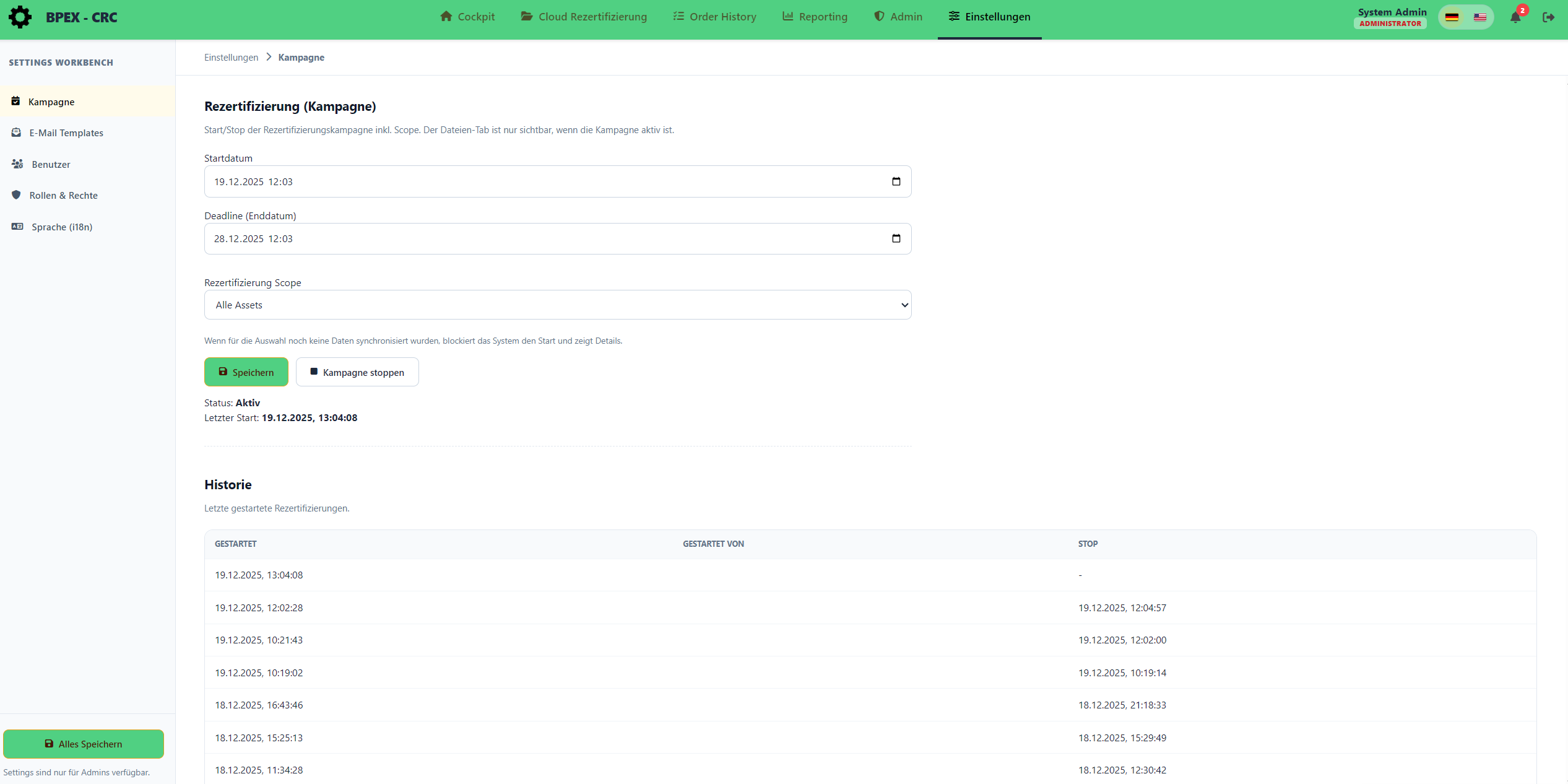 Ob kontinuierlich oder als frei planbare Kampagne - die Rezertifizierung lässt sich exakt an Ihre organisatorischen Anforderungen anpassen.