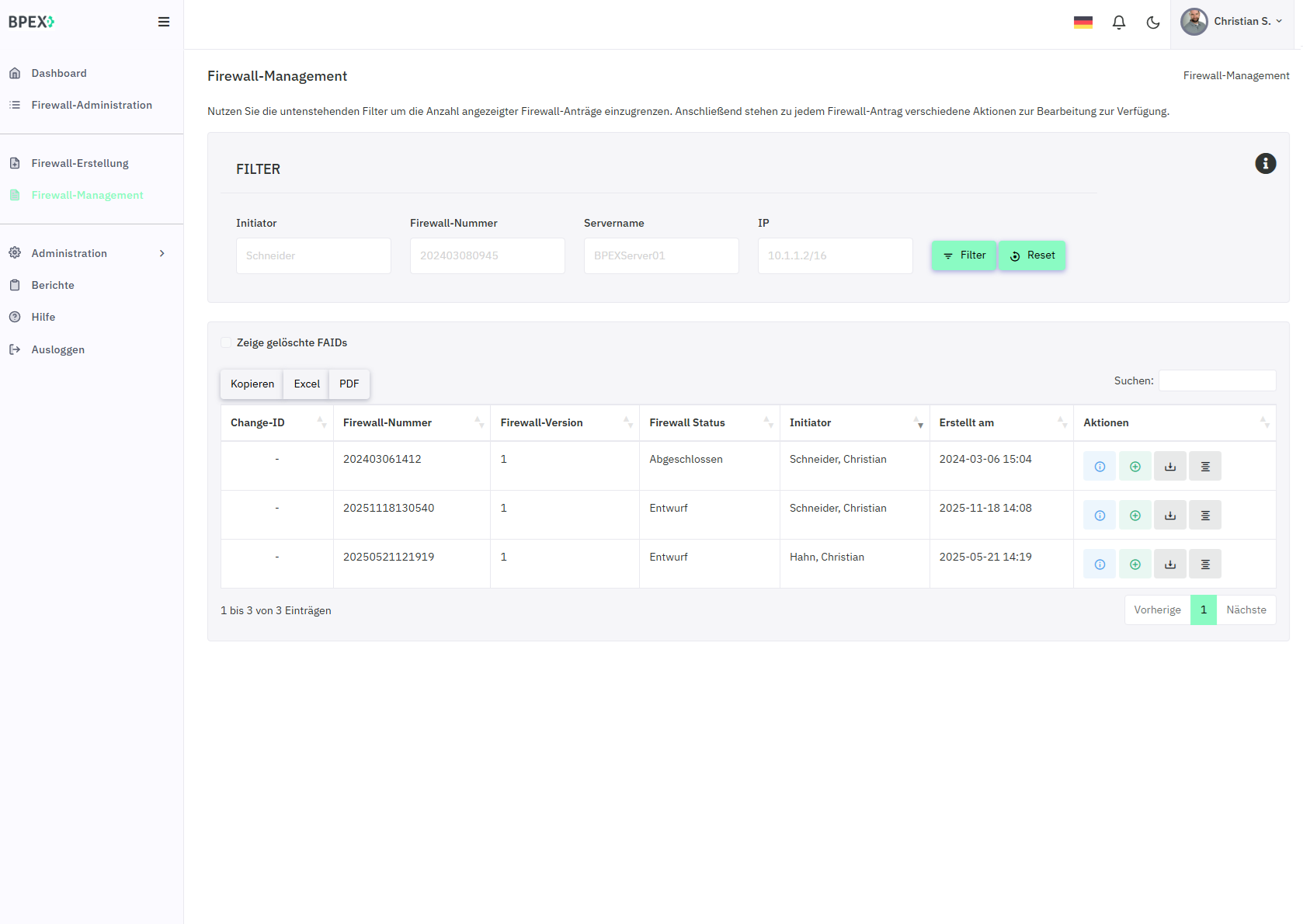 Alle eigenen und zugewiesenen Firewall-Anträge sowie deren Freischaltungen sind zentral einsehbar und verwaltbar.