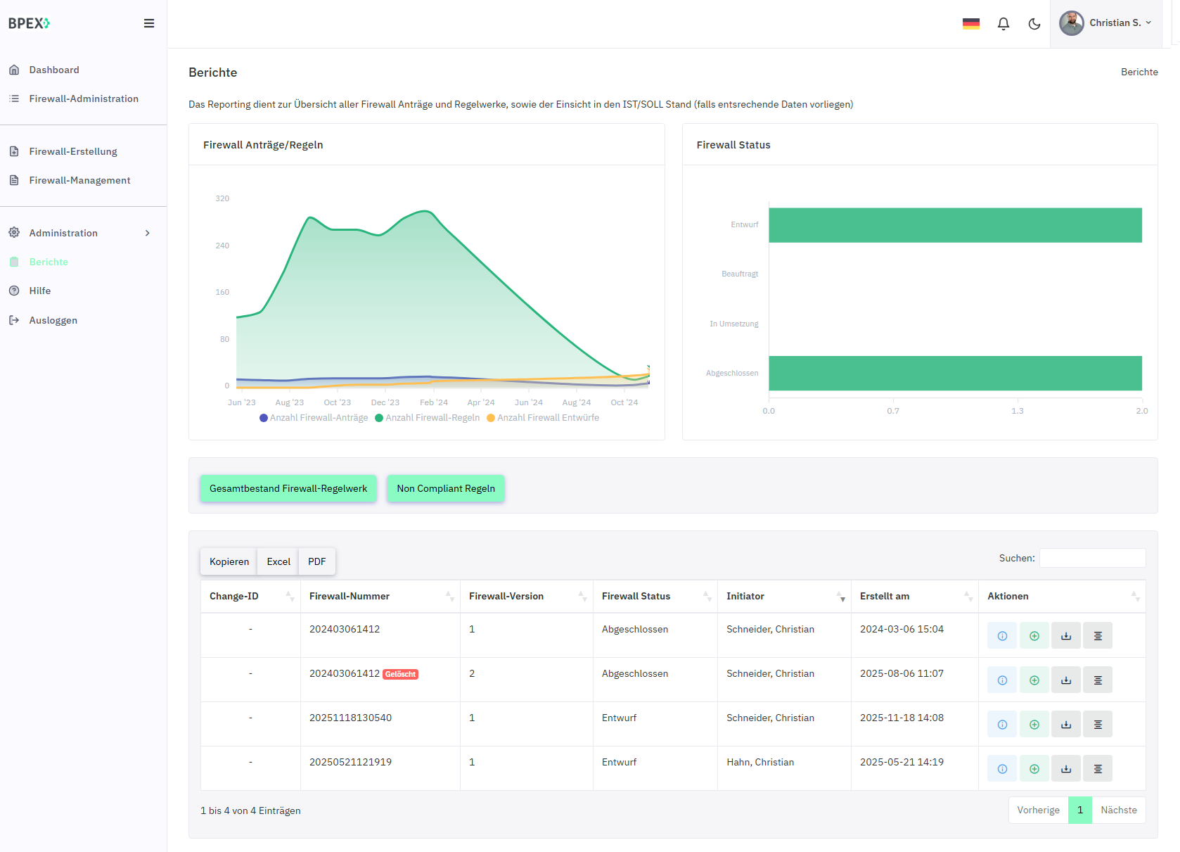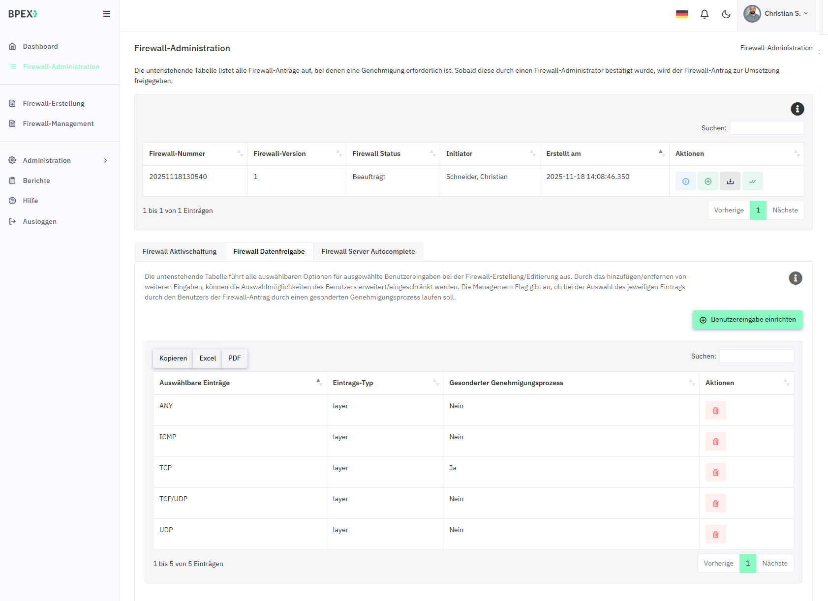 Alle eigenen und zugewiesenen Firewall-Anträge sowie deren Freischaltungen sind zentral einsehbar und verwaltbar.